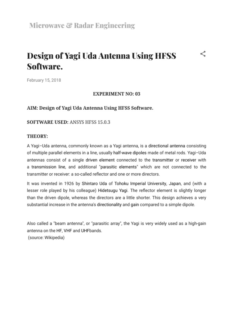 Design of Yagi Uda Antenna Using HFSS Software. | Electromagnetism | Radio